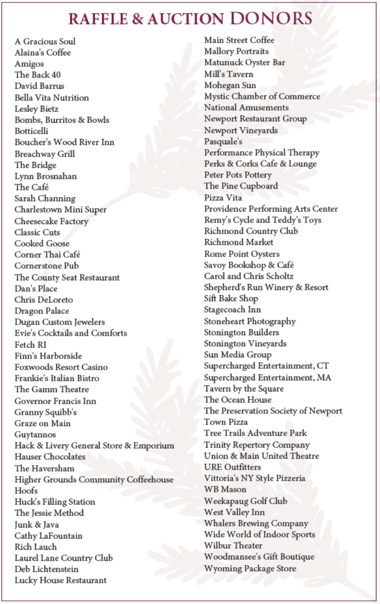 The event was made possible by our presenting sponsor, Neighborhood Health Plan of Rhode Island, and the support of our community partners who believe in our mission, listed below.