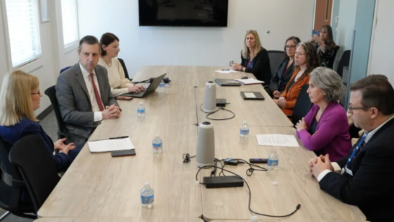 Rhode Island Congressman Seth Magaziner met with health leaders at Wood River Health on Monday to underscore how cuts to Medicaid would affect community health centers.